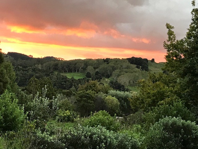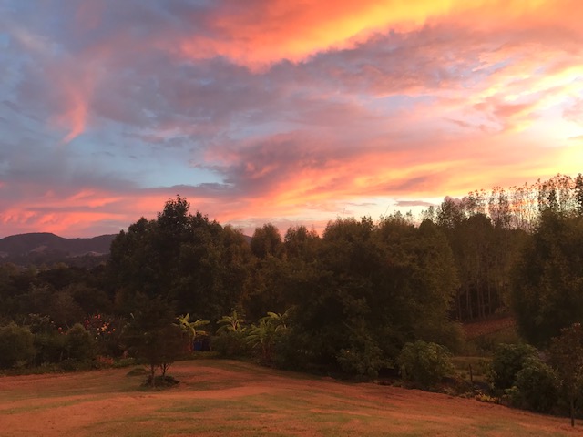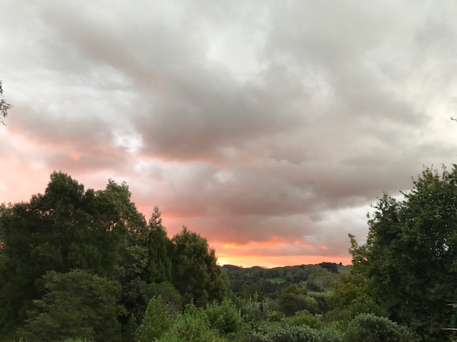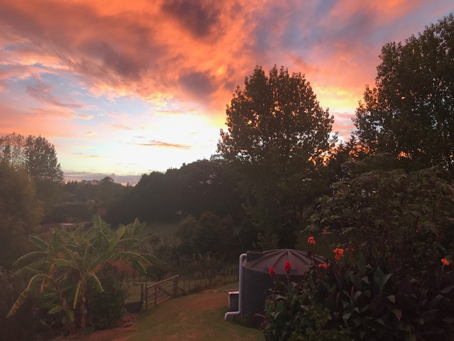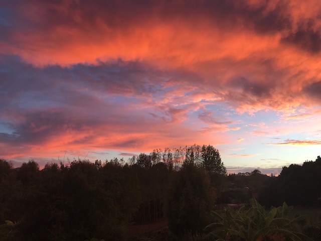 Red skies over the village by Margie
